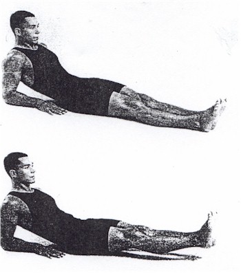 Exercises In Preparation For Doing the Five Tibetan RitesThe following group of exercises has been developed as a preparation for doing the Five Rites, or as an alternative when you are unable to do any of the Five Rites. Doing these exercises will help you strengthen and become more flexible to be able to do the Five Rites as they have been described above. Do these alternative exercises in the sequence from one to five and when possible, substitute the Five Rite exercise into this alternative program until you have fully integrated the Five Rites. As with the Five Rites, begin by doing two or three of each exercise daily, until you are able to do 10 each day. Once you are able to do ten of these alternatives, you should be ready to begin doing the Five Rite exercises themselves. Alternative (for Rite#1) Exercise #1